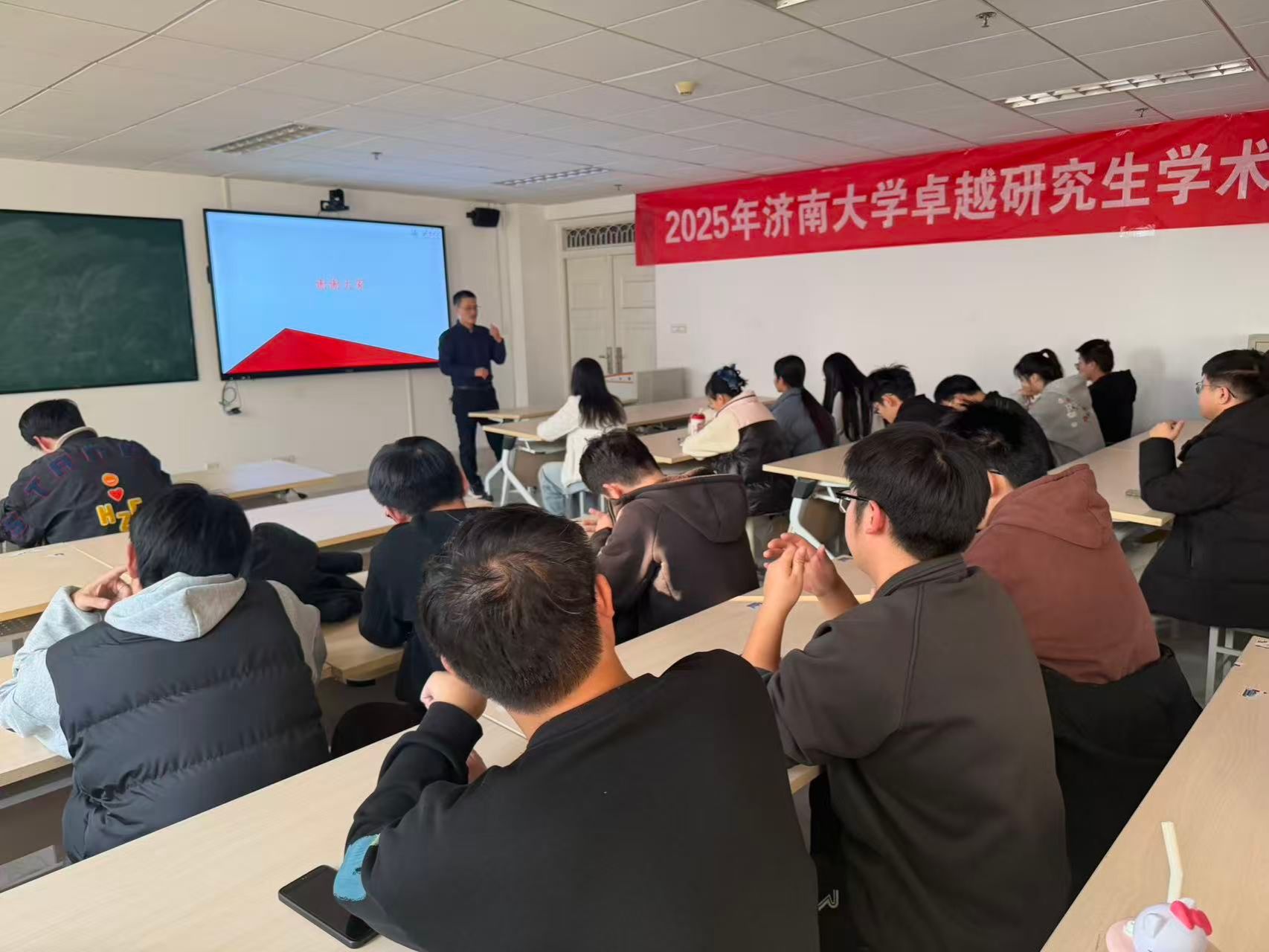 于2025年12月17日在机械楼A506成功举办第二届“卓越”研究生学术论坛。本次论坛邀请了荣获2025年研究生国家奖学金的丁言星、闫春成两位优秀研究生担任主讲人,学院研究生辅导员张畔全老师及研究生导师温道胜老师出席论坛。